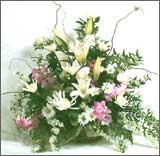 悲しみを少しでも和らげるように 白ベースの花に淡いピンクのお花をプラスしてソフトなイメージに仕上げました。 |