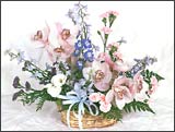 ピンク、ブルー系で優しい色合いにまとめました。存在感溢れるアレンジですので特別なシーンに。 |