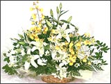 ユリ(白)・トルコキキョウ(白)・菊(白)・デンファレ(白)・オンシジューム(黄)